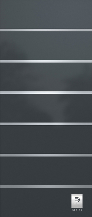 The security door facades are composed of two main parts, with a total thickness of 6mm. An aluminium sheet with the corresponding design, and an Etalbond (aluminium composite panel) or an MDF sheet.