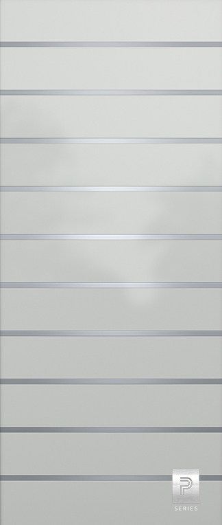 The security door facades are composed of two main parts, with a total thickness of 6mm. An aluminium sheet with the corresponding design, and an Etalbond (aluminium composite panel) or an MDF sheet.