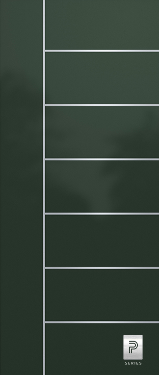The security door facades are composed of two main parts, with a total thickness of 6mm. An aluminium sheet with the corresponding design, and an Etalbond (aluminium composite panel) or an MDF sheet.