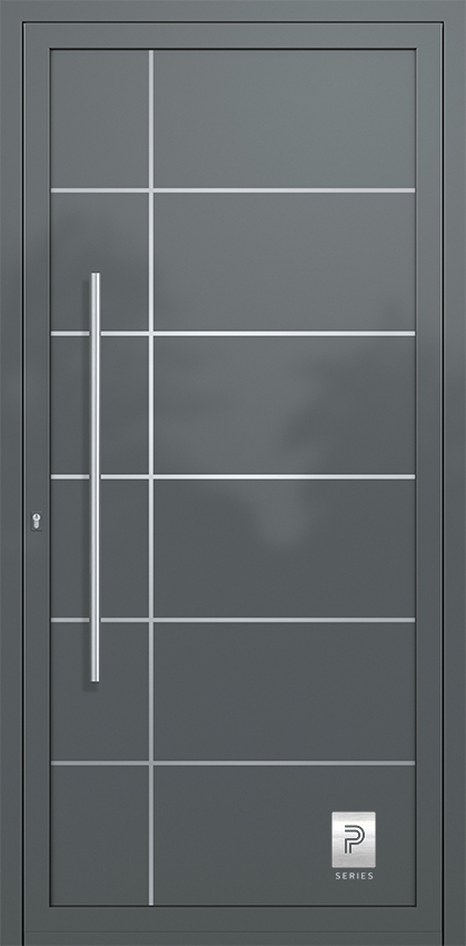 Beautiful aesthetic result composed by contemporary design, elegant lines, stainless steel inlaid elements and glasses is the new series of PREMIUM aluminium panels, for entrance doors.