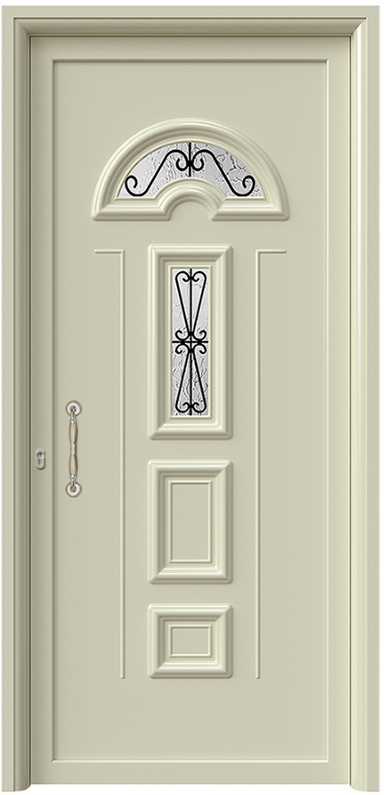 Πάνελ Αλουμινίου Πόρτας Εισόδου με Πρεσαριστά Σχέδια & Τζάμι με Κάγκελο