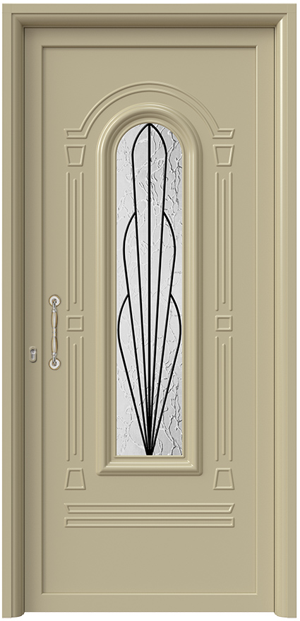 Πάνελ Αλουμινίου Πόρτας Εισόδου με Πρεσαριστά Σχέδια & Τζάμι με Κάγκελο