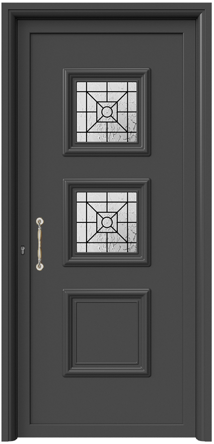 Πάνελ Αλουμινίου Πόρτας Εισόδου με Πρεσαριστά Σχέδια & Τζάμι με Κάγκελο