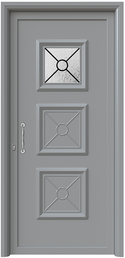 Πάνελ Αλουμινίου Πόρτας Εισόδου με Πρεσαριστά Σχέδια & Τζάμι με Κάγκελο