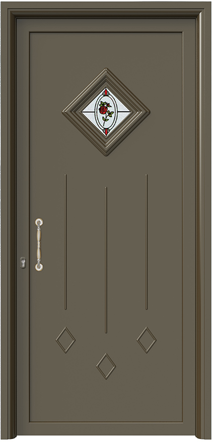 Πάνελ Αλουμινίου Πόρτας Εισόδου με Πρεσαριστά Σχέδια & Τζάμι Βιτρό